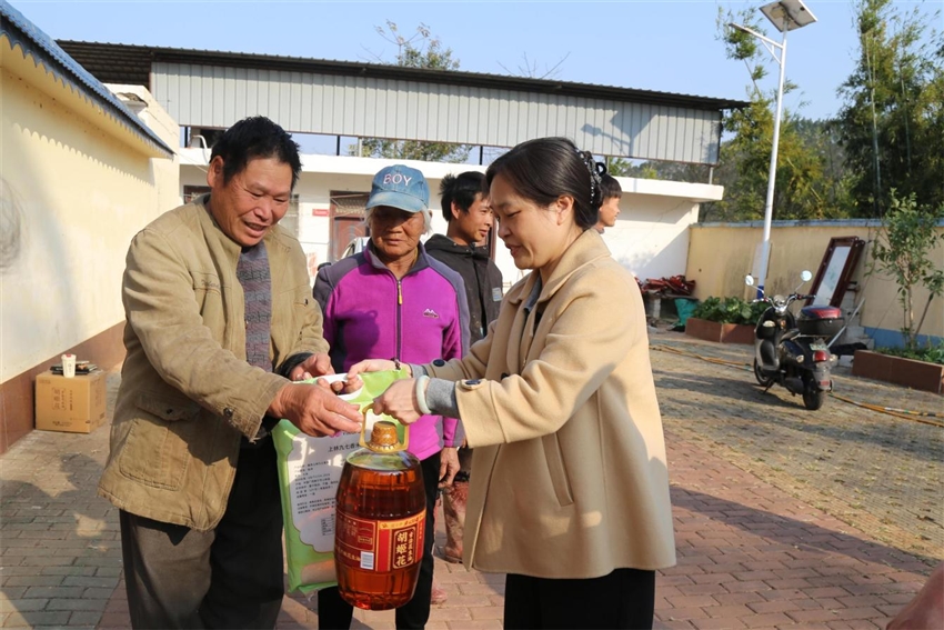 座談會(huì)后,潘曉伶一行慰問(wèn)了駐村第一書(shū)記,監(jiān)測(cè)戶家中了解生產(chǎn)生活情況,送上慰問(wèn)金、慰問(wèn)品及節(jié)日祝福